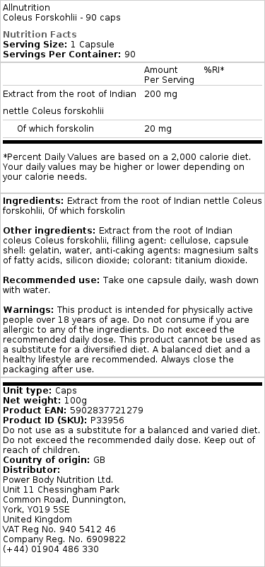 Forskolin er et effektivt naturligt supplement, som jeg har brugt mange gange til at støtte mine fremskridt med en række recomping og fedttab slankekure faser, dette supplement fungerer godt til at hjælpe med mobiliseringen af fedtdepoter, der skal brændes af som en brændstofkilde, når du løber i et kalorieunderskud som et hovedkrav for at gøre fremskridt med at reducere kropsfedtniveauer, synes jeg, at dette parrer fantastisk med L-Carnitin i en dosis på 2 gram om dagen og 6 softgels CLA for at danne en ganske effektiv ikke-stimulerende fedtforbrændingsstabel, der fungerer endda godt for at tillade genstridige fedtdepoter at blive målrettet, som for mig og mange andre individer hovedsageligt er placeret på den nedre mave, nederste del af ryggen og øvre lår og er de sidste steder, hvor fedt kan tabes fra under intense skærefaser. Forskolin virker også godt til at øge det naturlige steronniveau, hvilket er en anden grund til, at jeg har en tendens til at inkludere det i mine rekomponerende slankefaser for at gøre det muligt at gøre flere fremskridt med hensyn til at få muskelmasse og styrke, samtidig med at niveauet af kropsfedt reduceres, for det bedste resulterer i at forbedre fedttab og medvirke til at øge steronniveauet, jeg anbefaler at bruge 50-60 mg forskolin om dagen, som nemt kan opnås ved at indtage 3 af disse anstændige doserede kapsler fra Allnutrition, dette tilskud har også en række andre sundhedsmæssige fordele som f.eks. fungerer godt for at reducere niveauet af blodsukker, booster styrken af immunsystemet, understøtter optimal leverfunktion og sænker blodtrykket, hvilket gør dette til et fantastisk generelt sundheds- og velværetilskud, der kan tages året rundt i kombination med en anstændig multivitamin- og fiskeoliebaseret supplement for at understøtte dine fremskridt med en række slankekurefaser, hvor du tager på i mager masse og taber fedt.