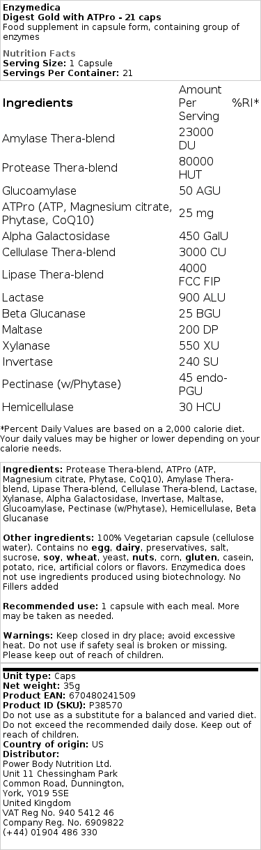 Otkrijte Enzymedica – Digest Gold with ATPro, vrhunski dodatak prehrani u obliku kapsula, dizajniran da podrži vaš probavni sustav. Ovaj proizvod je formuliran kako bi pružio podršku za optimalnu funkciju probave, koristeći kombinaciju prirodnih enzima.