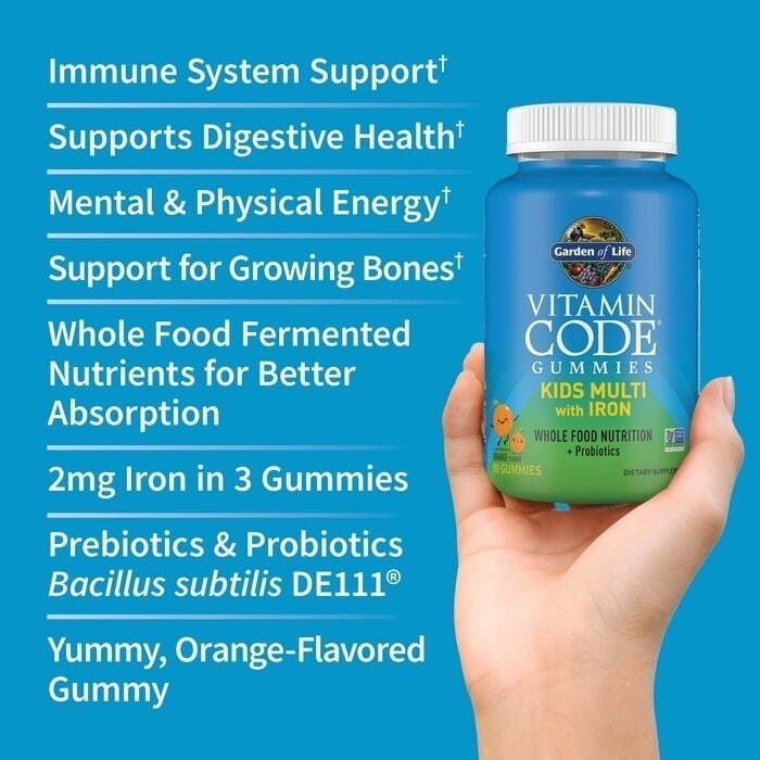 Otkrijte Garden of Life – Vitamin Code Kids Multi with Iron Gummies, savršen dodatak prehrani za vaše najmlađe. Ove ukusne gumenice s okusom naranče osmišljene su kako bi podržale vitalnost i dobrobit djece u njihovim formativnim godinama.