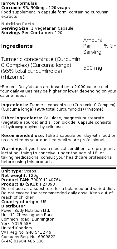 Jarrow Formulas – Kurkumin 95 – 500 mg · 60 kapsula