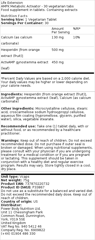 AMPK er et enzym, der findes i alt levende. Regulerer energi. Skaber nye mitokondrier og får autofagi til at ske. Det er anti-aging. Life extension er en kvalitetsvirksomhed med gode råvarer. størrelsen er god, doseringen god. Jeg ville have ch