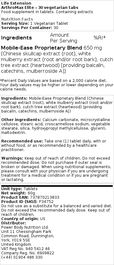 - Tvrdnje: sastojci u ArthroMax® Elite tradicionalno se koriste za podršku općem stanju organizma i vitalnosti. Također, pomaže u održavanju normalne funkcije mišića i kostiju što doprinosi boljoj kvaliteti svakodnevnog života.