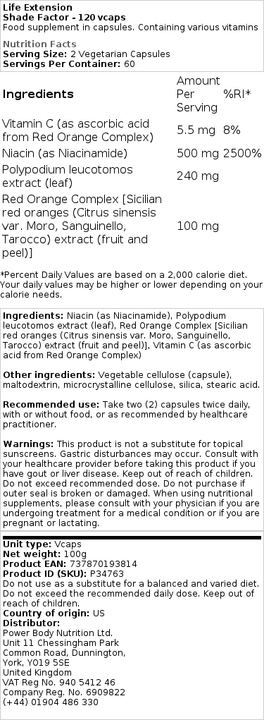 Otkrijte Life Extension – shade Factor™, inovativan dodatak prehrani u obliku kapsula, dizajniran da podrži vaš zdrav način života. ovaj proizvod je pažljivo formuliran s kombinacijom biljnih ekstrakata i nutrijenata koji su poznati po svojim blagotvornim svojstvima.