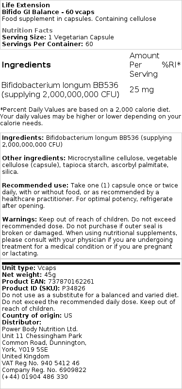 Dodaci prehrani iz ponude Life Extension pažljivo su odabrani kako bi podržali uravnotežen i zdrav način života. “Bifido GI Balance” dolazi u pakiranju od 60 vegetarijanskih kapsula, proizvedenih u Sjedinjenim Američkim Državama, pružajući visokokvalitetnu potporu vašem probavnom sustavu svakodnevno.