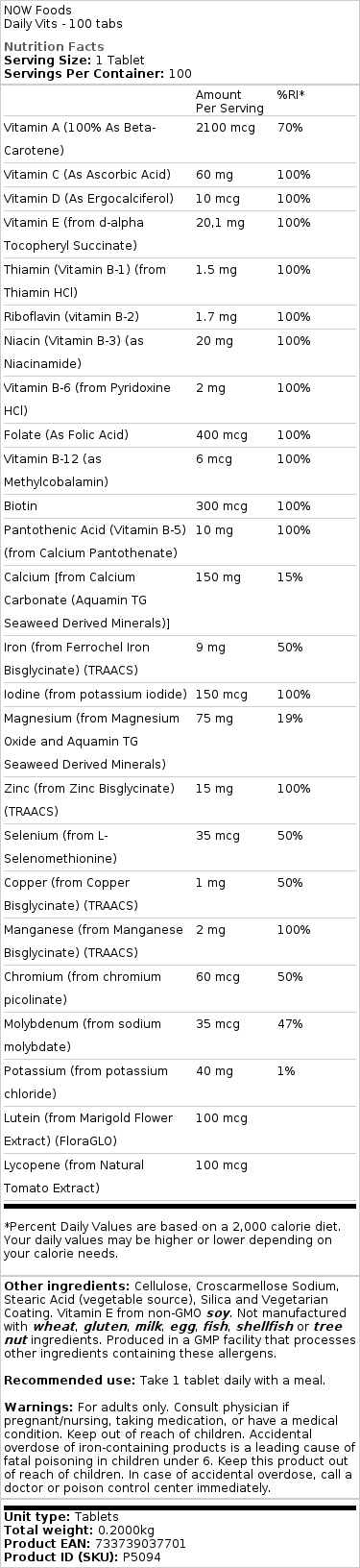 Upoznajte NOW Foods – Daily Vits – 100 tableta