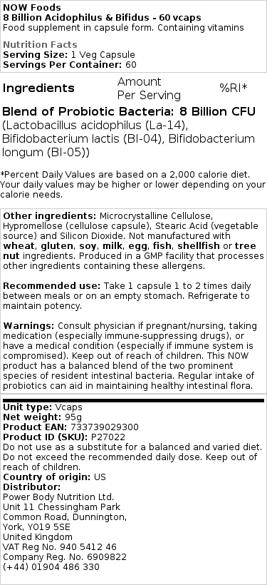 Jeg kan godt lide den gode kvalitet af NOW-produkter, og at dette er 8 Billion Acidolpihilus med Bifidus. Jeg tager en om dagen. Jeg plejede at lide med forkølelsessår og mundsår, men siden jeg tog dette kosttilskud, får jeg sjældent heller. Plus, det hjælper på fordøjelsen!