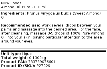 Otkrijte prirodnu snagu NOW Foods – Almond Oil, Pure – 118 ml, visokokvalitetnog bademovog ulja iz Španjolske, idealnog za obogaćivanje vaše svakodnevne prehrane i njege kože.