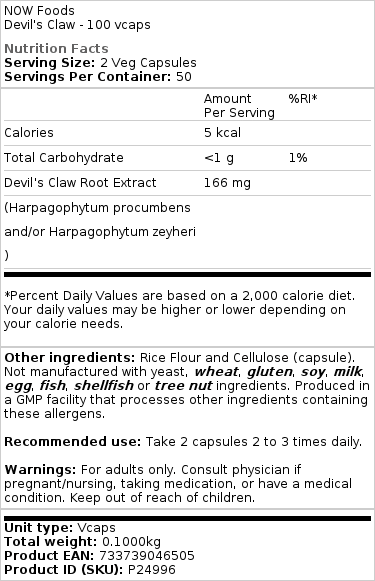 Karakteristike NOW Foods – Devil’s Claw kapsula