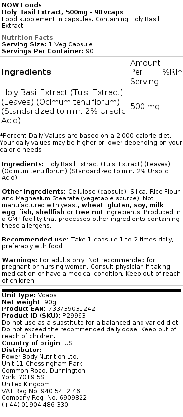 Otkrijte snagu svete bazilike s NOW Foods – Holy Basil Extract, 500mg – 90 vcaps. Ovaj dodatak prehrani koristi ekstrakt svete bazilike, biljke koja je tradicionalno cijenjena zbog svojih blagotvornih svojstava.