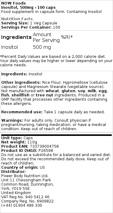 Dette er MYO INOSITOL for dem af jer, der leder efter varianten. Kvaliteten er fremragende. Pulver smag sød, ingen eftersmag. Ingrediensen er NOW FOODS sædvanligt, rent pulver. Prisen er lavere end andre MYO INOSITOL. Min søvn er i bedring, vågnede op for at tisse, normalt svært ved at falde i søvn igen, men efter cirka en uges tid at tage 1,5 gram før sengetid, kan jeg se en vis forbedring i at falde i søvn igen. Hvis dette virker for mig, håber jeg, at det også virker for dig. 🙂