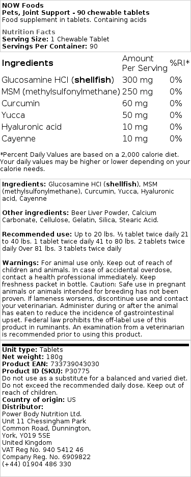 Ledstøtte er kritisk hos alle dyr, så det er dejligt, at dette tilskud findes fra Now foods. Hvis du tænker på katte og hunde, er indvirkningen på deres led fra deres daglige løb, hop, klatring, alle deres bevægelser ekstraordinær! ligesom mennesker, når de bliver ældre, svækkes deres ledsundhed naturligt, så det er afgørende for et smertefrit liv at sørge for, at du også passer på deres led