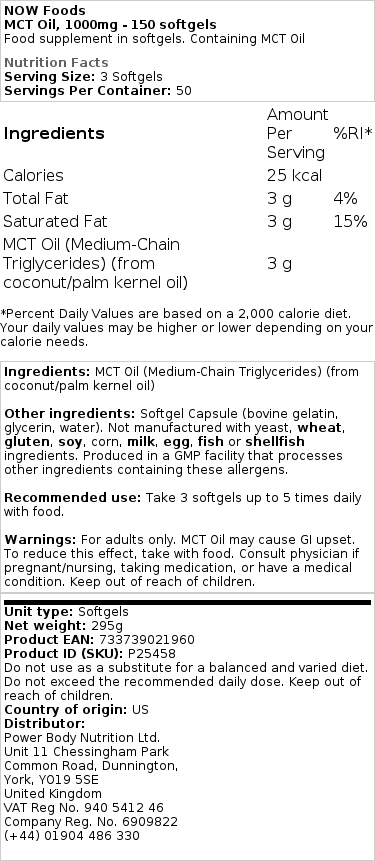 Upoznajte NOW Foods – MCT Oil, 1000mg – 150 softgels