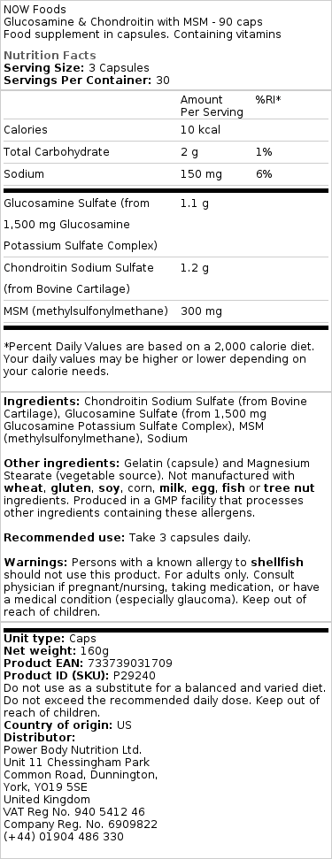 Dette er et ganske komplet sundhedsunderstøttende supplement til led og bindevæv, som jeg føler er fantastisk til at forbedre ledmobilitet og funktion ud over at reducere enhver ømhed, der kan opstå på grund af en række knoglerelaterede helbredstilstande eller års slitage fra udførelse af en række intense cardio-sessioner og vægtbaseret træning. Jeg har en tendens til at lide af intens ledømhed i løbet af vinterens fyldningsfaser, som alvorligt påvirker mine knæ, albuer og nogle gange skuldre, hvilket gør det sværere for mig at blive ved med at flytte meget tunge vægte til en række øvelser såsom squats, hack squats, benpres, bænk pres, håndvægtsskulderpres og overheadpres for at opnå de ønskede fremskridt i forhold til at få mere muskelmasse, så et tilskud som dette virker meget godt til at lindre ledsmerterne og øge mobiliteten, hvilket giver mig mulighed for at fortsætte træningen på de nødvendige høje niveauer af intensitet for at gøre anstændige fremskridt med at forbedre min fysik. Det go to supplement, som jeg altid har en tendens til at bruge i hele mine vægtøgningsfaser og på bestemte tidspunkter i løbet af året, når jeg lider af ømme albuer, er Glucosamin, som er inkluderet i dette produkt, og jeg føler mig en af de mest effektive ledstøttende forbindelser, der findes, den anden. tilføjelser såsom Chondroitin og MSM fungerer endnu bedre i kombination for at danne et omfattende og effektivt komplet ledstøttetilskud, som jeg vil anbefale til alle, der lider af smertefulde albuer og knæ, for at kunne fungere korrekt i hverdagen ud over at opretholde høje niveauer af intensitet gennem vægtbaserede træninger og cardio-sessioner. Alt i alt er dette et af de bedste og højeste kvalitet til led- og bindevævsstøttende kosttilskud, der er tilgængelige, der bruger ekstrakter af høj kvalitet fra NOW Foods, som jeg vil anbefale til alle, der lider af ledsmerter som en meget sundere mulighed for de almindeligt tilgængelige smertestillende midler såsom paracetamol og ibuprofen . Jeg føler, at en dosis på 3 kapsler om dagen virker bedst til at lindre enhver intens ledømhed, og for endnu større ledstøtte kan du tage dette i kombination med et fiskeoliebaseret kosttilskud af høj kvalitet.
