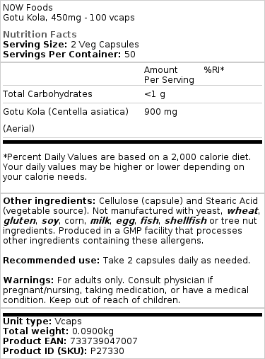 NOW – Gotu Kola – 450 mg · 100 kapsula