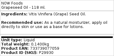 Upoznajte NOW – Grapeseed Oil – 118 ml