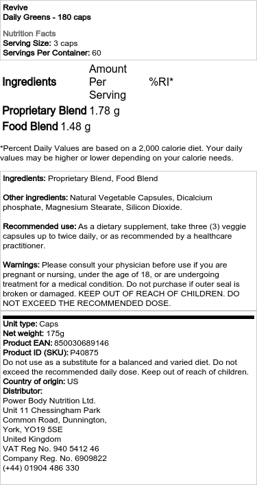 Otkrijte snagu prirode s Revive – Daily Greens, vašim dnevnim dodatkom prehrani u obliku kapsula koji je pažljivo formuliran kako bi podržao vaš aktivan i zdrav način života.