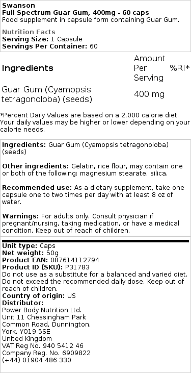 Upoznajte Swanson – Full Spectrum Guar Gum, 400mg – 60 kapsula