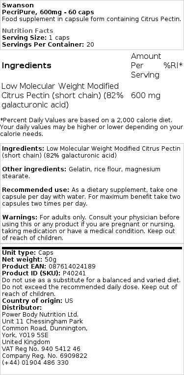 Upoznajte Swanson – PectiPure, 600mg – 60 kapsula