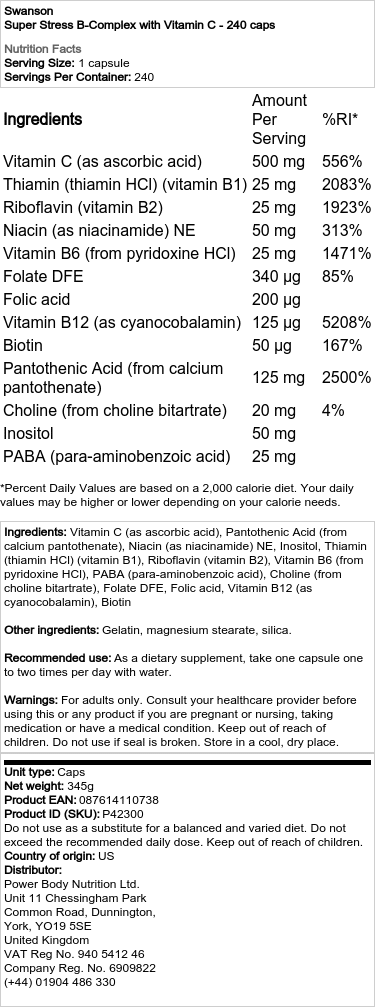 Otkrijte kako Swanson – Super Stress B-Complex with Vitamin C može podržati vaš svakodnevni život. Ovaj dodatak prehrani kombinira esencijalne vitamine B kompleksa s vitaminom C, formuliran kako bi pomogao u održavanju energije i vitalnosti.