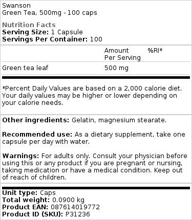 Dodaci prehrani iz ponude Swanson pažljivo su odabrani kako bi podržali uravnotežen i zdrav način života, pružajući visokokvalitetne proizvode iz pouzdanih izvora. Swanson – Green Tea kapsule su jednostavan i efikasan način da iskoristite prednosti zelenog čaja svakodnevno.