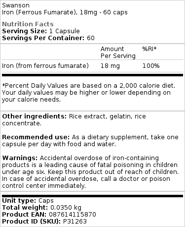 Upoznajte Swanson – Iron (Ferrous Fumarate), 18mg – 60 kapsula
