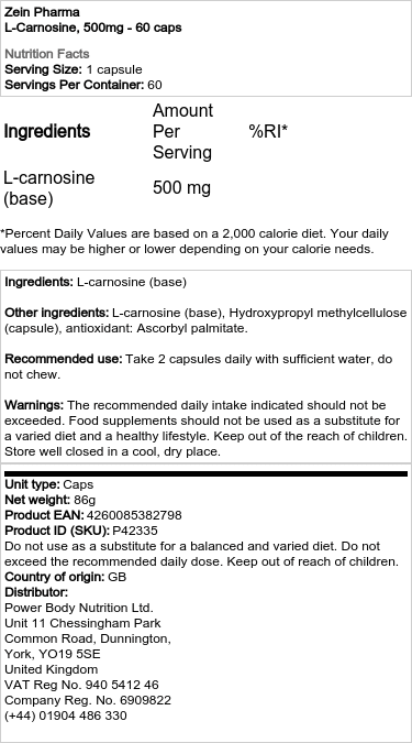 Upoznajte Zein pharma – L-Carnosine, 500mg