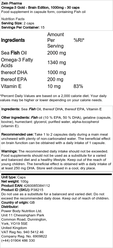 Otkrijte moć Omega-3 masnih kiselina s Zein Pharma – Omega-3 Gold – Brain Edition, dizajniranim da podrži vašu opću dobrobit i mentalnu jasnoću.